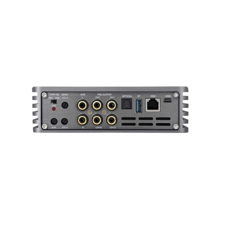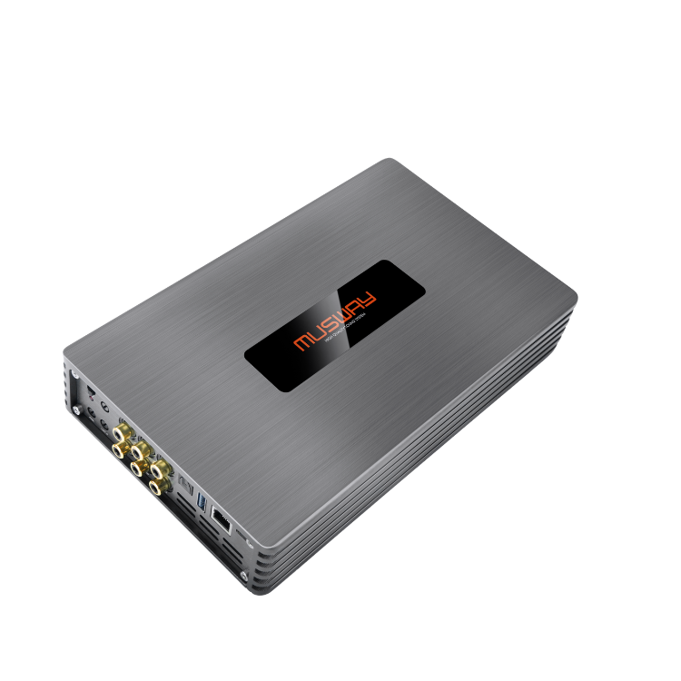 The Musway M8 is a compact 8-channel Class D amplifier with a 12-channel DSP, engineered to deliver precise tuning and powerful performance. With staggered outputs of 80–135 W across six channels and two high-power channels reaching 220 W each, the M8 offers versatile configurations for speakers and subwoofers alike.