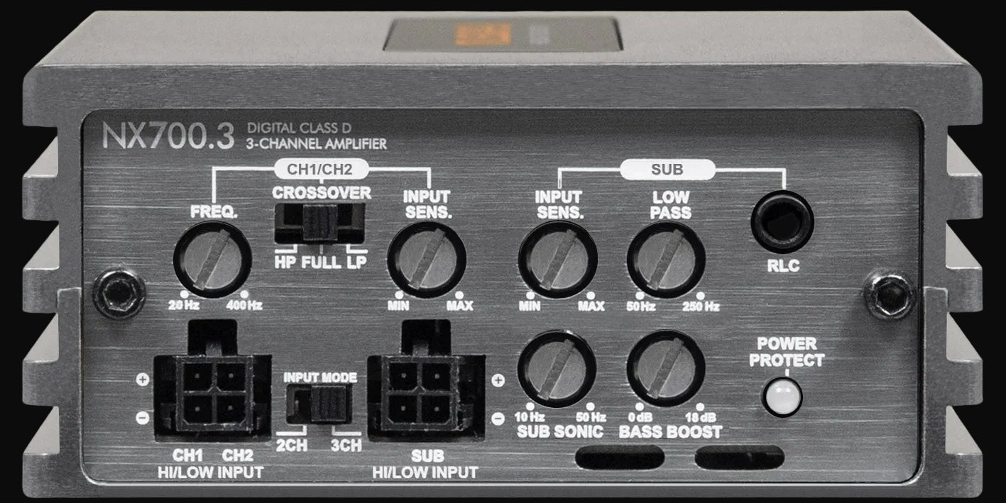 Engineered for versatility, the NX700.3 combines clean full-range amplification for front speakers with a strong mono subwoofer channel. Advanced crossover controls allow precise tuning for both speaker and sub outputs, while EPS-enabled high-level inputs ensure seamless integration with factory head units. Its compact footprint and start-stop compatibility make it perfect for OEM-friendly upgrades without compromising power or sound quality.