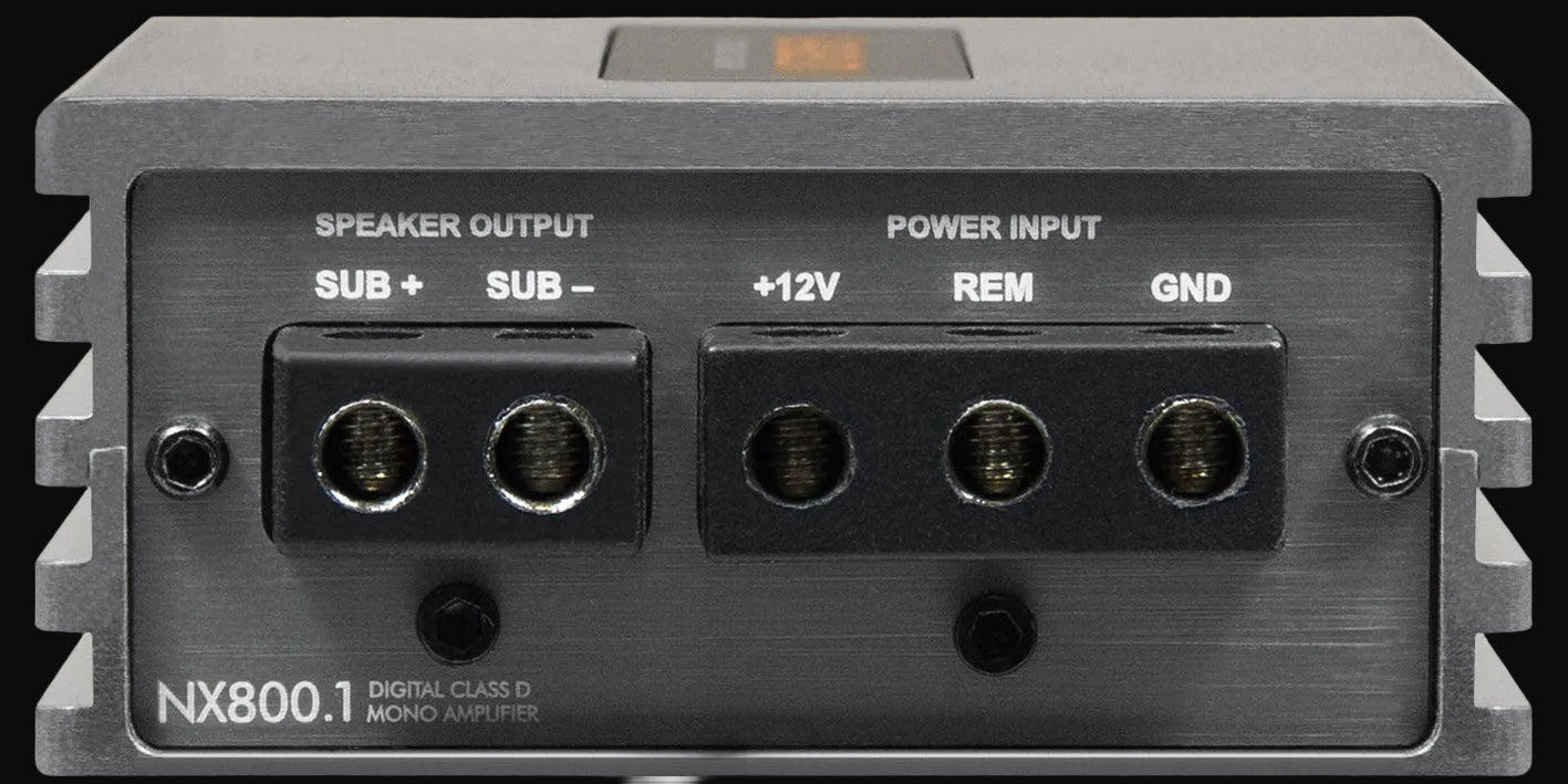 For enthusiasts who want impactful, controlled bass, the NX800.1 delivers. With 800 watts at 1 ohm, advanced filtering, and high-level input compatibility, this amplifier offers uncompromising performance in a compact footprint — ideal for high-output daily systems.